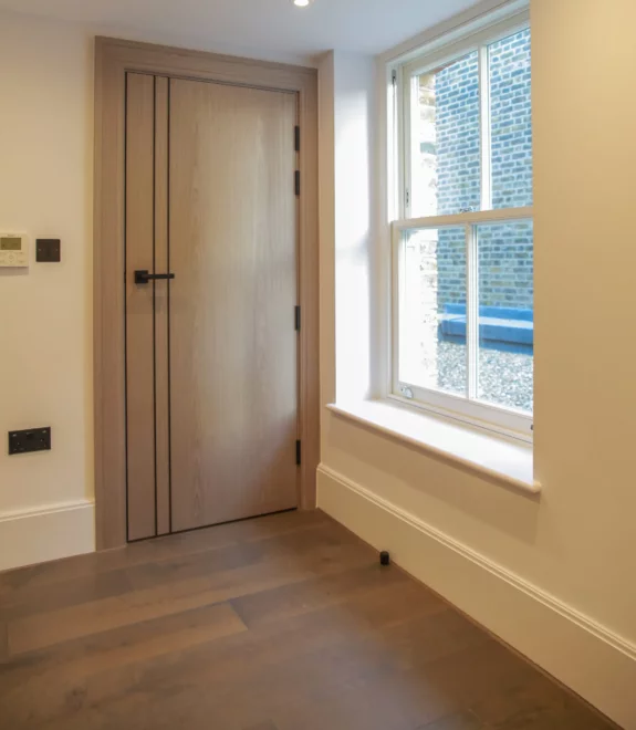 Located along one of South Kensington’s most prestigious streets, this multi-residential property has been fully upgraded with new timber windows and external doors, all designed and installed to complement the building’s refined character. Internally, a variety of bespoke internal doors were fitted, including veneered finishes tailored to blend seamlessly with surrounding walls and furnishings, adding both functionality and elegance to the living spaces.